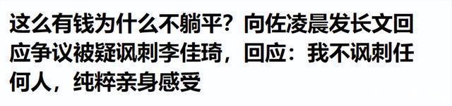 九派新闻,2023-09-13,这么有钱为什么不躺平?向佐凌晨发长文回应争议被疑讽刺李佳琦,回应,我不讽刺任何人,纯粹亲身感受